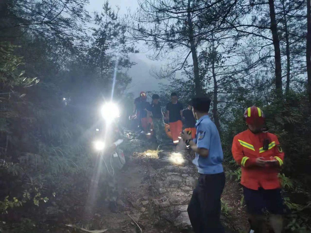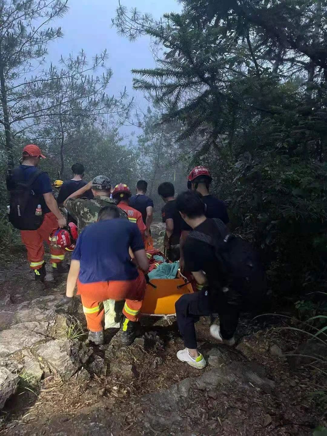 下山的路,稍不留神就容易摔倒,更何况还要抬马某下山。而且上山过程中,为了争取时间,大家已经消耗了大量的能力。为了安全起见,陈兴旺与消防队员商量后,决定将人员分成两组,轮流抬担架。