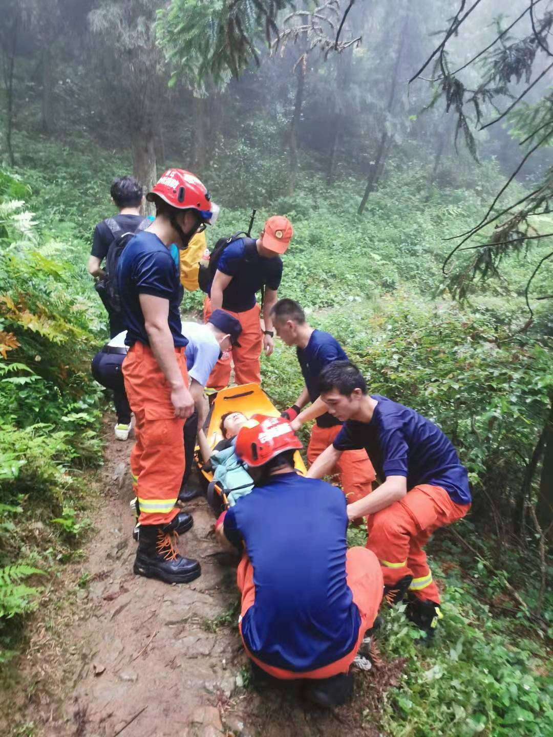 由于山势较高,雨天路滑,大家爬山将近一个小时,才与报警人任先生碰面。跟随任先生到马某的所在地后,大家首先对马某的身体情况进行检查,并给予初步救治。