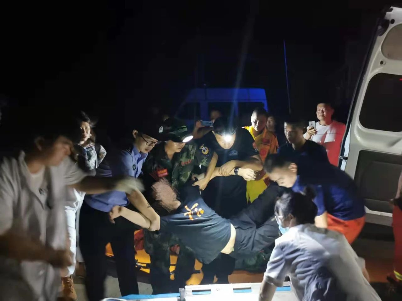 大伙将马某抬到公盂山脚时,天已黑透。此时,离接到报警已过去了近5个小时。等把马某送上救护车后,大伙早已汗流浃背、精疲力竭。所幸,马某并无大碍。